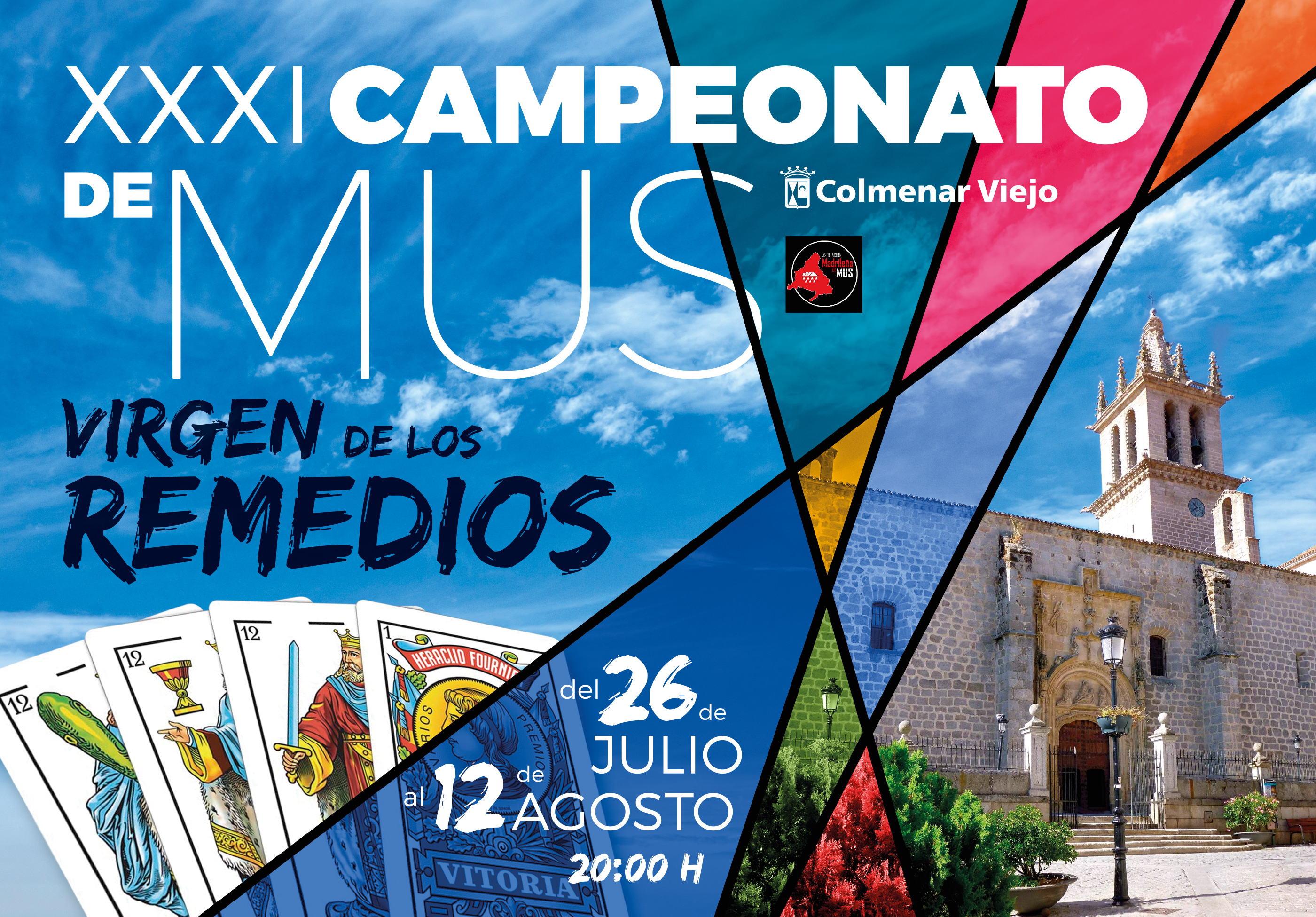 04-Julio-2022.- La Asociación Madrileña de Mus en colaboración con la Concejalía de Deportes organizan el XXXI Campeonato de Mus ‘Virgen de Remedios’, que arranca el martes 26 julio con partidas cada tarde a las 20:00h. en la Plaza del Pueblo y se alarga hasta el 12 de agosto, tarde en la que se hará la entrega de premios.