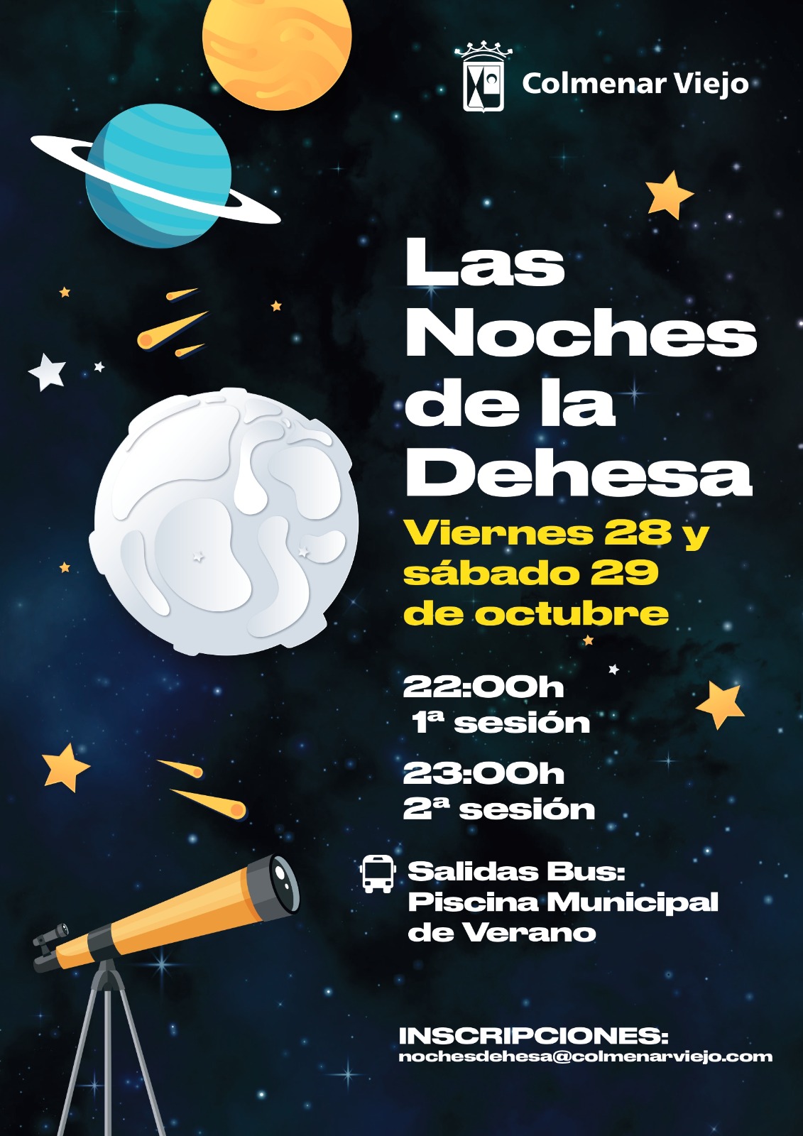 Para tramitar la solicitud hay que remitir un email a la siguiente dirección de correo electrónico nochesdehesa@colmenarviejo.com indicando: