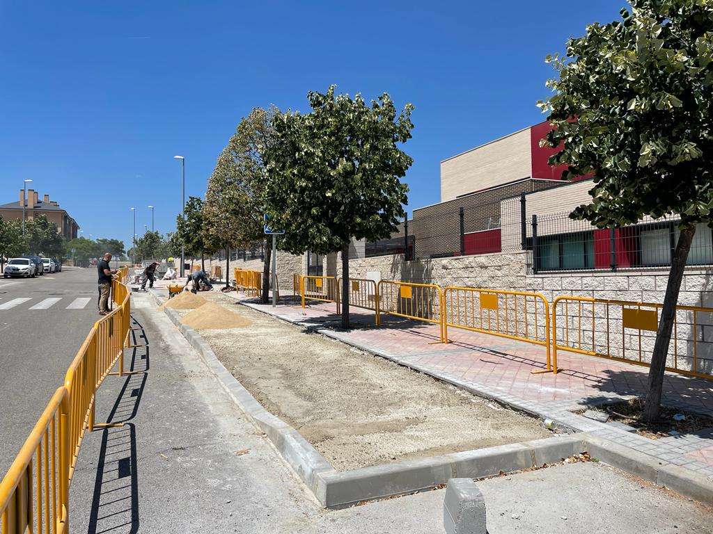 21-Julio-2022.- Avanza la construcción de las plataformas con aceras ensanchadas y vallado para mejorar la seguridad peatonal en los accesos a centros educativos de Colmenar Viejo con la ejecución en estos días de una en la calle Tren de la Fresa, coincidiendo con el acceso principal al CPB Héroes del 2 de Mayo, y en los próximos días comenzará una intervención similar en la calle Pilar de Zaragoza, en el acceso al CPB Antonio Machado. Estas dos plataformas cuentan con un presupuesto de 39.955 euros.