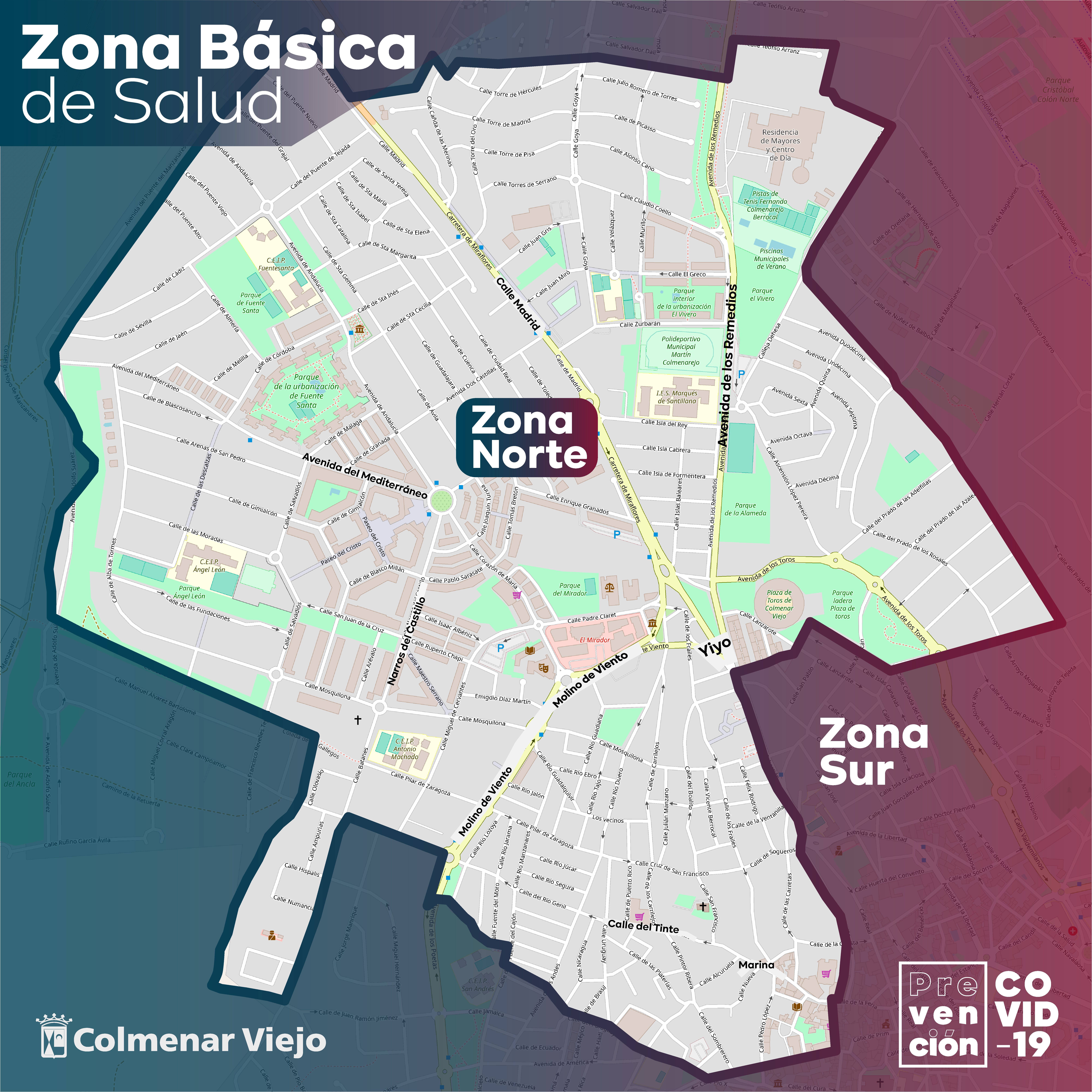 En el día de hoy se publica la ORDEN 1322/2020, de 9 de octubre, de la Consejería de Sanidad, por la que se adoptan medidas específicas temporales y excepcionales por razón de salud pública para la contención del COVID-19 en determinados núcleos de población, como consecuencia de la evolución epidemiológica. Entre las zonas que precisan medidas específicas temporales se encuentra la Zona Básica de Salud Norte de Colmenar Viejo, que se define en este mapa: