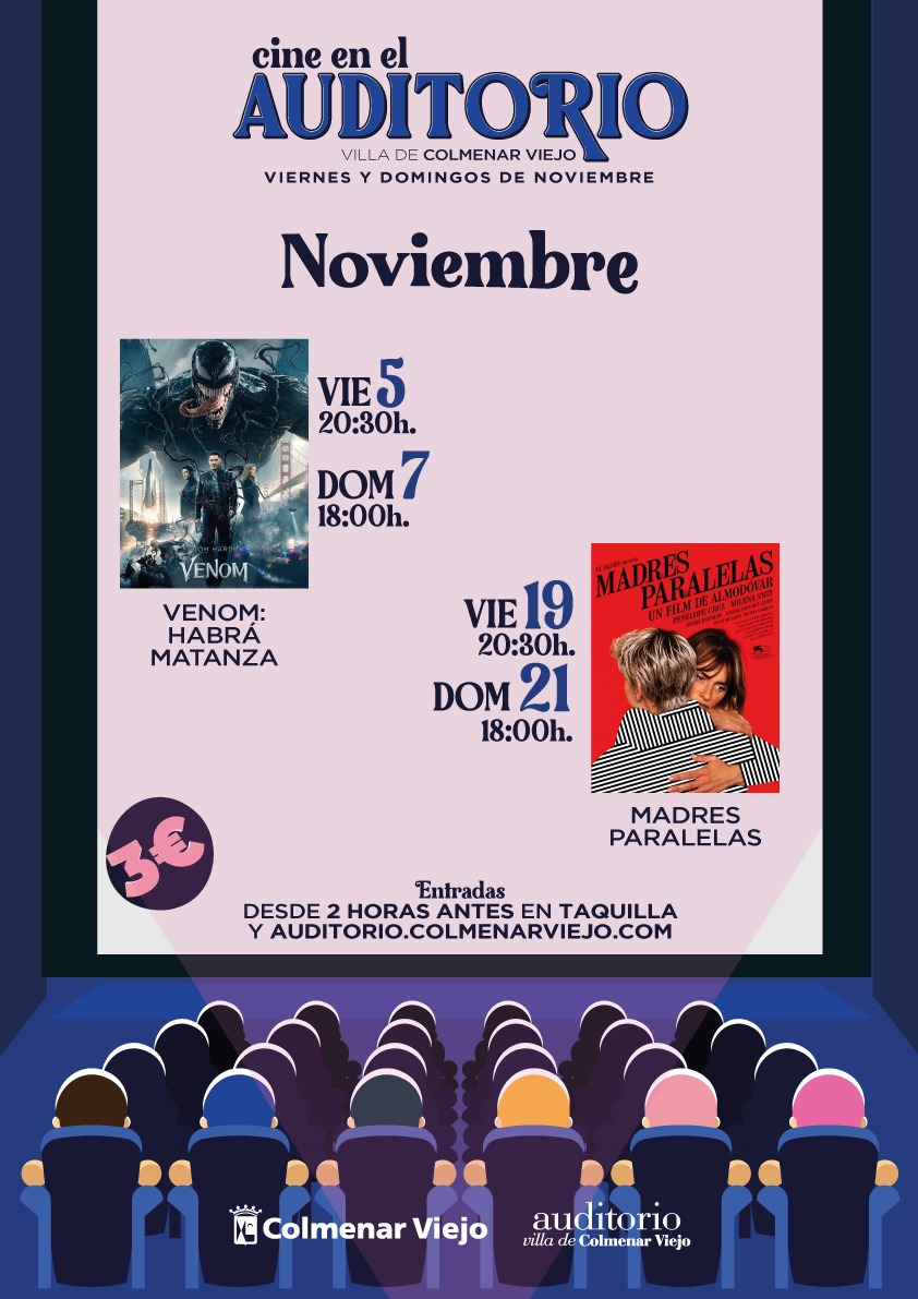 25-Octubre-2021.- La Concejalía de Cultura presenta las películas que se proyectarán en el Cine del Auditorio de noviembre, que en esta ocasión dos títulos que llegaron a las salas en el mes de octubre: Madres paralelas y Venom 2.