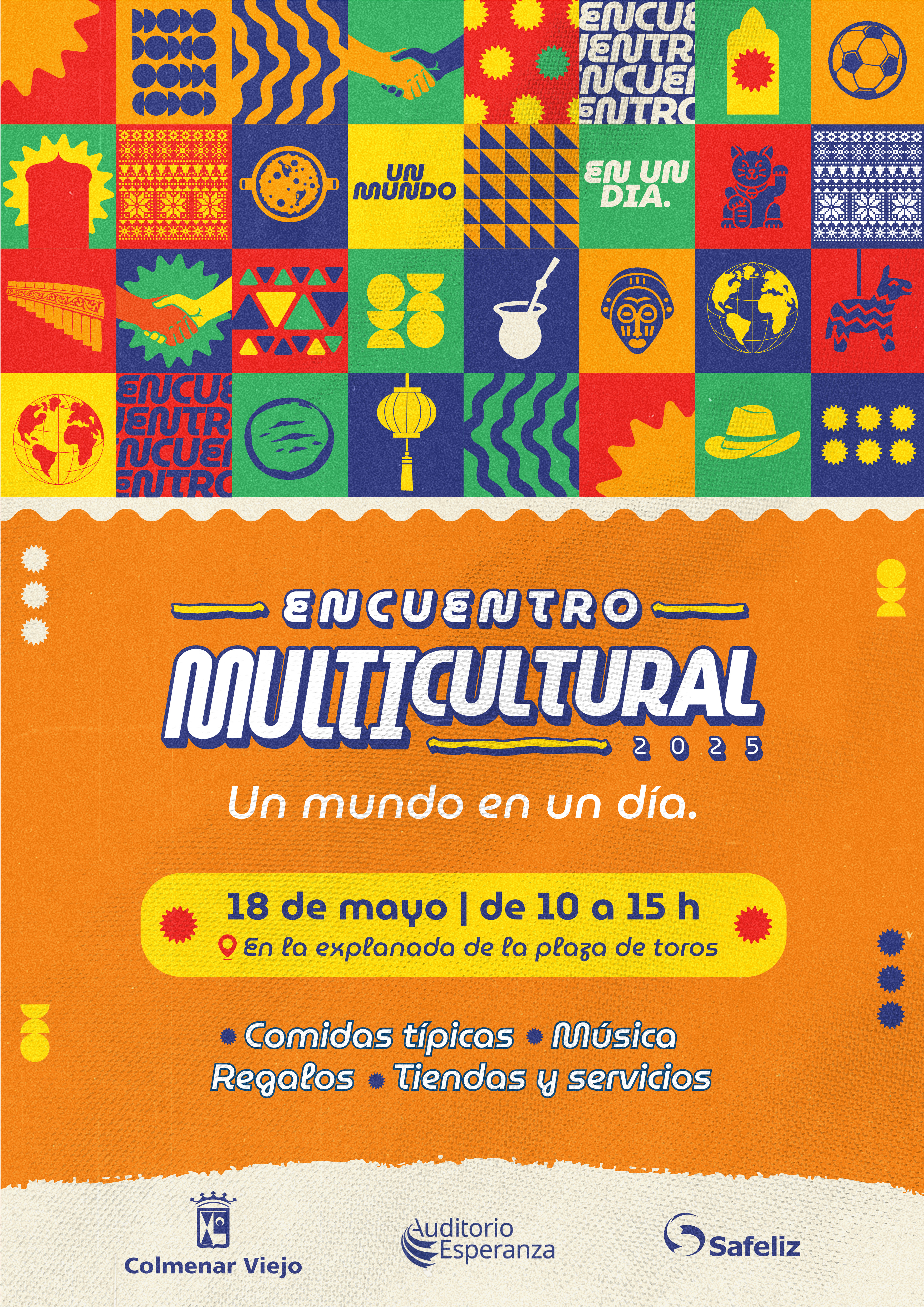08-mayo-2025. La explanada de la Plaza de Toros de Colmenar Viejo acogerá el domingo 18 de mayo el Encuentro Multicultural 2025, una jornada organizada por vecinos de distintas culturas residentes en nuestro municipio, en colaboración con el Ayuntamiento, el Auditorio Esperanza y la editorial Safeliz.