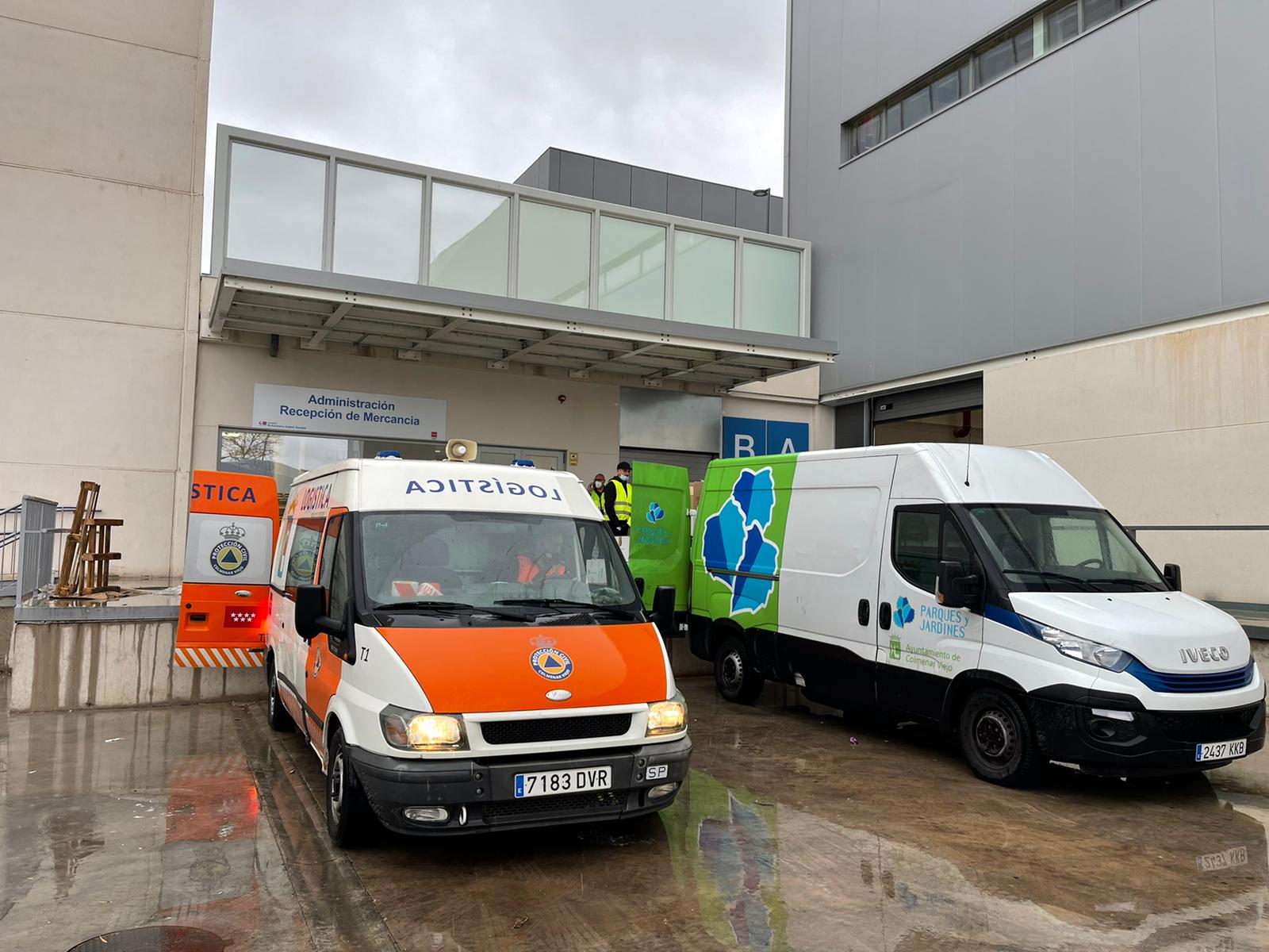 11-Marzo-2022.- Protección Civil de Colmenar Viejo ha entregado esta tarde en el Hospital Enfermera Isabel Zendal las 217 cajas con alimentos en lata, productos de higiene personal y farmacia donados por los colmenareños a lo largo de la semana en los puntos de recogida habilitados en edificios municipales.