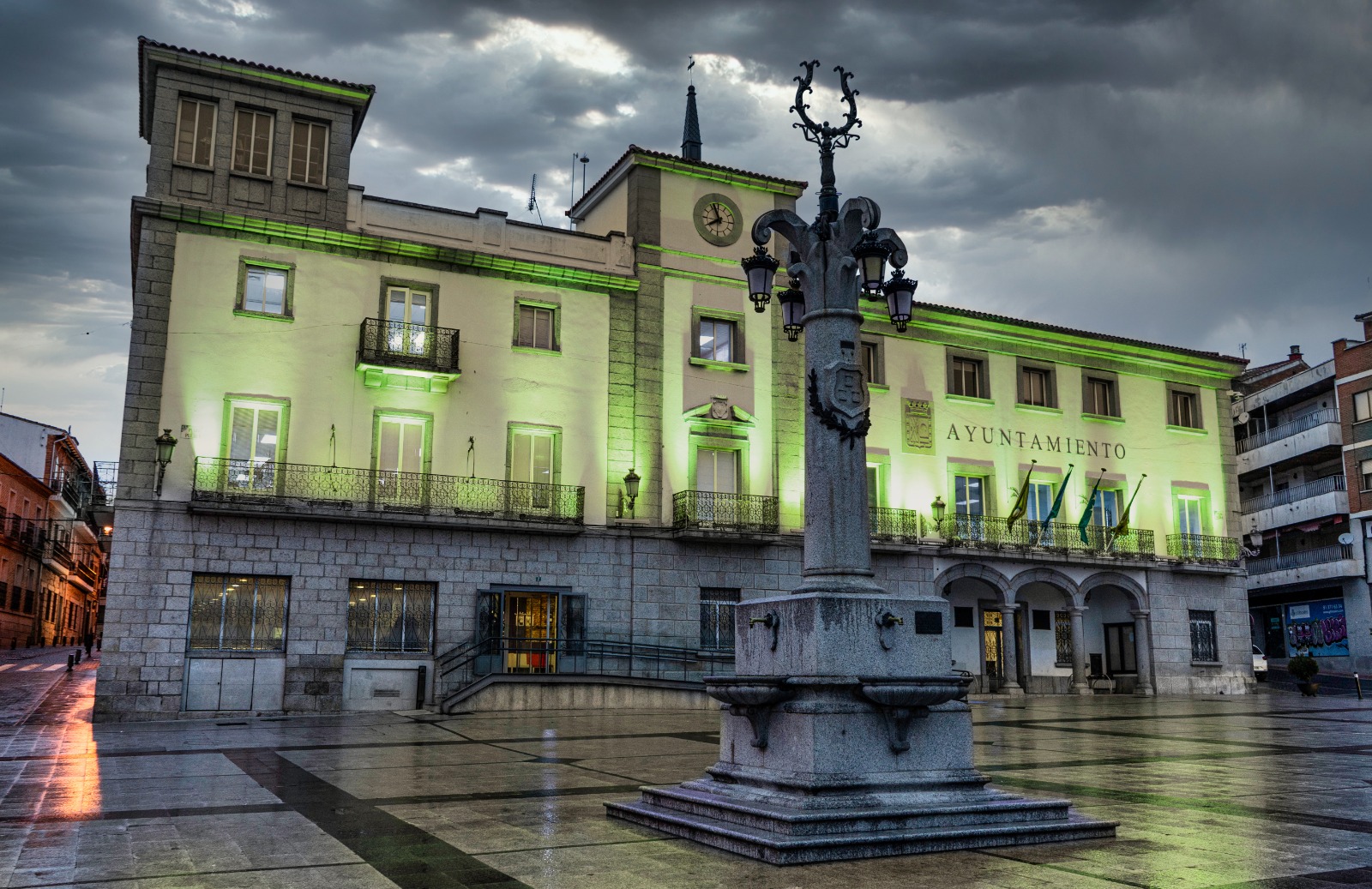 04-Febrero-2022.- El Ayuntamiento de Colmenar Viejo ilumina esta noche su fachada de verde con motivo al Día Mundial contra el Cáncer, que se celebra cada 4 de febrero en homenaje a todos los pacientes, sus familiares y a los profesionales que luchan por ganar esta batalla.