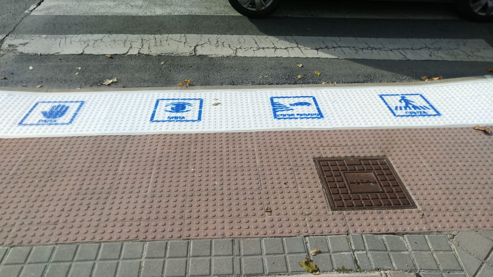 Tras realizar una prueba sobre tipologías de pintura y claridad de identificación de los pictogramas, en los próximos días se van a pintar 15 pasos de peatones con 4 pictogramas, los necesarios para relatar el proceso de uso del paso de peatones con seguridad: MIRA-PARA-COCHE PARADO-CRUZA.