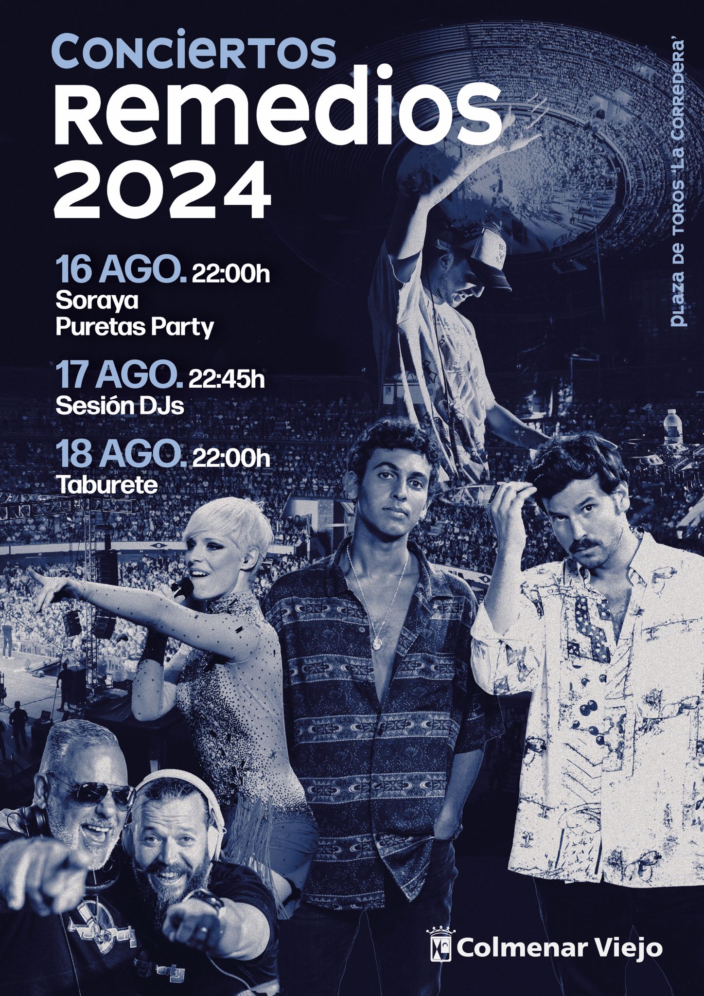 “Estamos ultimando la programación de la Fiestas Patronales de 2024, y ya podemos adelantar los Conciertos de Remedios que, dada la excelente acogida que ha tenido los últimos años por vecinos y visitantes, tendrán lugar en la semana previa a las tradicionales fiestas y en un escenario único como es la Plaza de Toros, en cuyos aledaños queremos generar un ambiente festivo”, explica Nacho Aceña, concejal de Festejos. “Con la presencia de estos conocidos artistas nacionales y las sesiones de DJs para los más jóvenes, intentamos adaptarnos a los diversos gustos musicales para garantizar el disfrute de todos los públicos”, añade el edil.