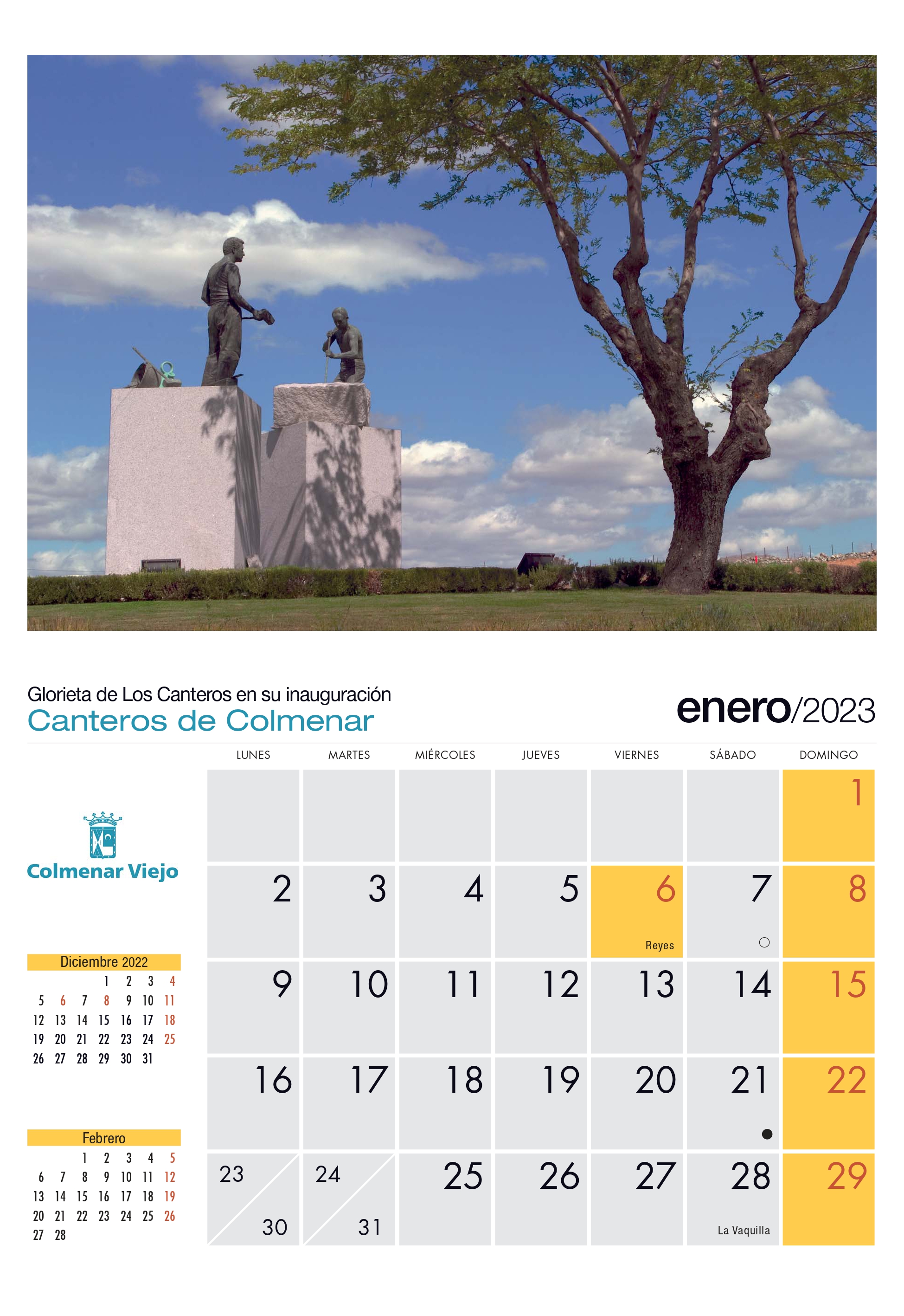 14-Diciembre-2022.- Ya puede encontrarse en los edificios municipales el Calendario 2023 que en esta ocasión está protagonizado por los canteros. Un año en el que recorrer los 12 meses junto a ellos: pasado, presente y futuro de Colmenar Viejo.
