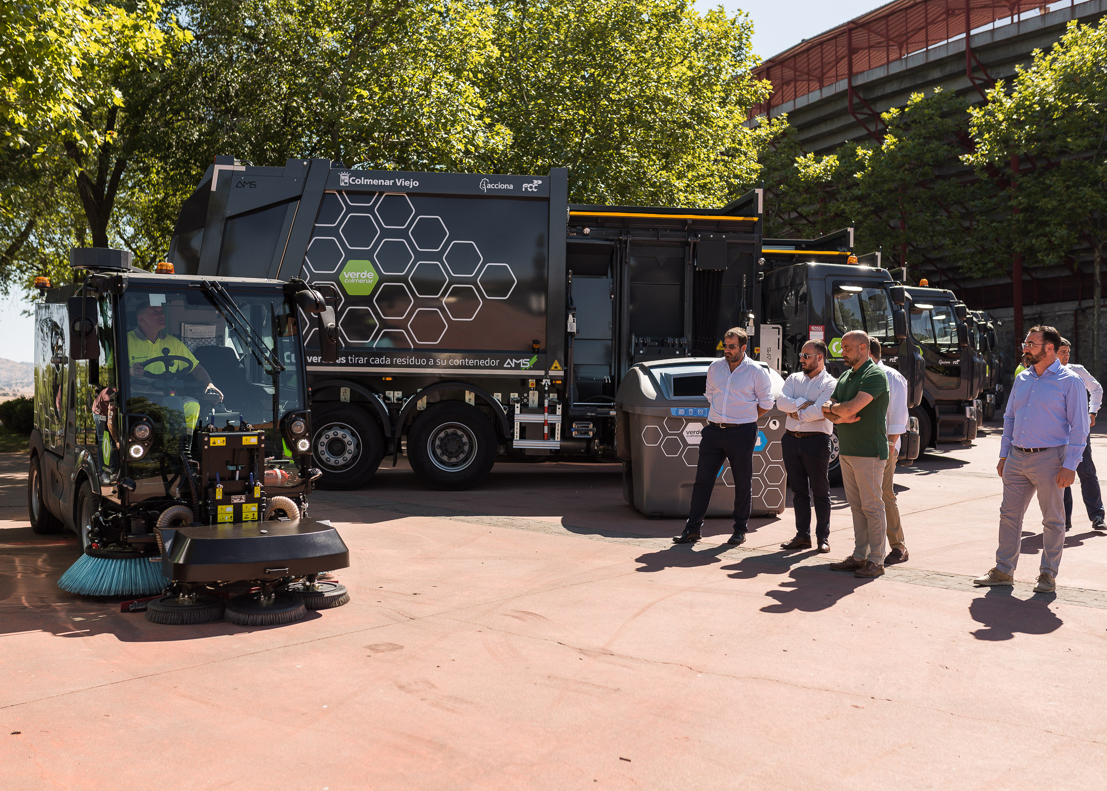 “A nosotros nos parece muchísimo tiempo, porque en el concepto del servicio que diseñamos a través de los pliegos era fundamental esta maquinaria, pero los técnicos nos informan que en el contexto mundial que hay las esperas han sido cortas. Esperamos mucho de estos camiones, de la eficiencia que van a dar a nuestro servicio que recoge todas las fracciones de residuos cada día, y que ahora se hará mucho más rápido. Qué decir de la mejora que vamos a conseguir con más agua en nuestras calles, pudiendo actuar en más puntos cada día con limpiezas con agua a presión, con agua caliente, para mantener no solo las calles barridas, sino en un mejor estado de limpieza de los pavimentos de aceras, calzadas adoquinadas, puntos de contenedores etc. y en esa misma línea nos va a ser de gran ayuda la fregadora, que nos aspirará y fregará con agua a presión plazas y espacios más transitados sin erosionar los pavimentos. La incorporación del camión con el que podremos llevar a cada barrio los puntos limpios móviles, y la primera unidad de los mismos son uno de los más claros ejemplos del camino hacia el Verde Colmenar en que nos encontramos inmersos, donde separaremos para que todo tenga muchas vidas más, y viviremos en un entorno más limpio.” Ha explicado el concejal, Felipe Mansilla Nogales.