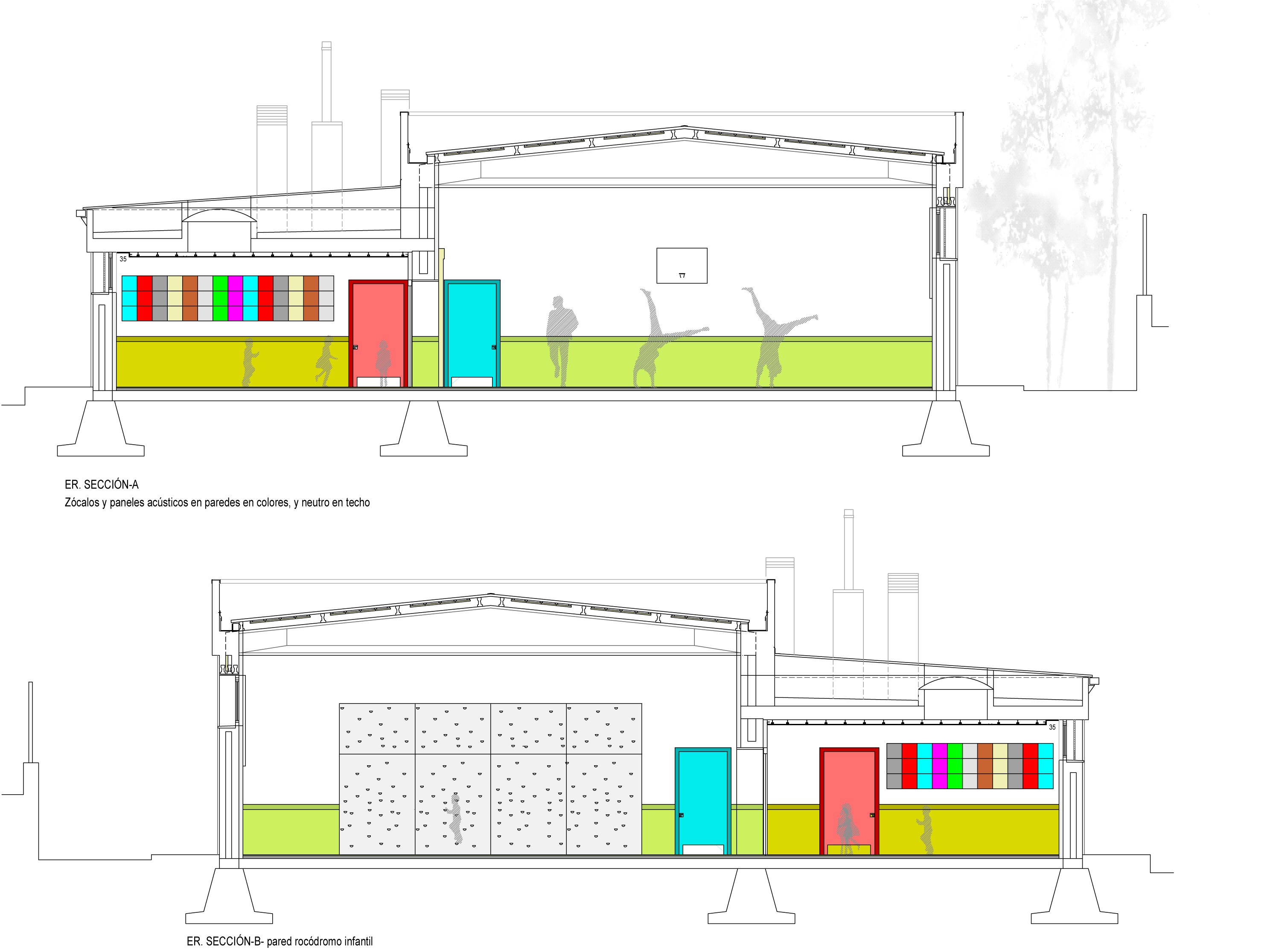 Se ejecuta una reforma integral del pabellón del gimnasio, en el que se acusa el paso de los años en sus revestimientos de paredes, deficiencias de climatización, y estado de los acabados, pero que, además, para ganar un aula de psicomotricidad, se eliminaron vestuarios, solución que dejó a la instalación con una distribución poco eficiente y tiene escasez de baños. Tras la reforma el edificio va a pasar a tener acceso por el lado Oeste, sin barreras arquitectónicas a las dos salas, que sí compartirán y un los nuevos baños masculino y femenino, así como tendrán una conexión entre ellas. Las salas resultantes van a ser de 234,31 metros cuadrados, y 70 metros cuadrados respectivamente y van a contar con nuevos pavimentos en los solados, nuevos pavimentos de las paredes, se van a colocar paneles para mejorar la acústica, todas las instalaciones eléctricas, iluminación por led, nuevos equipos de climatización… así como en el exterior se va a acometer la incorporación de ventanas para favorecer la entrada de luz solar y la mejor ventilación de las salas, se van a incorporar barandillas en las zonas con más diferencia de cotas en las aceras y, la fachada que da a las pistas polideportivas del centro, se mejora estéticamente.