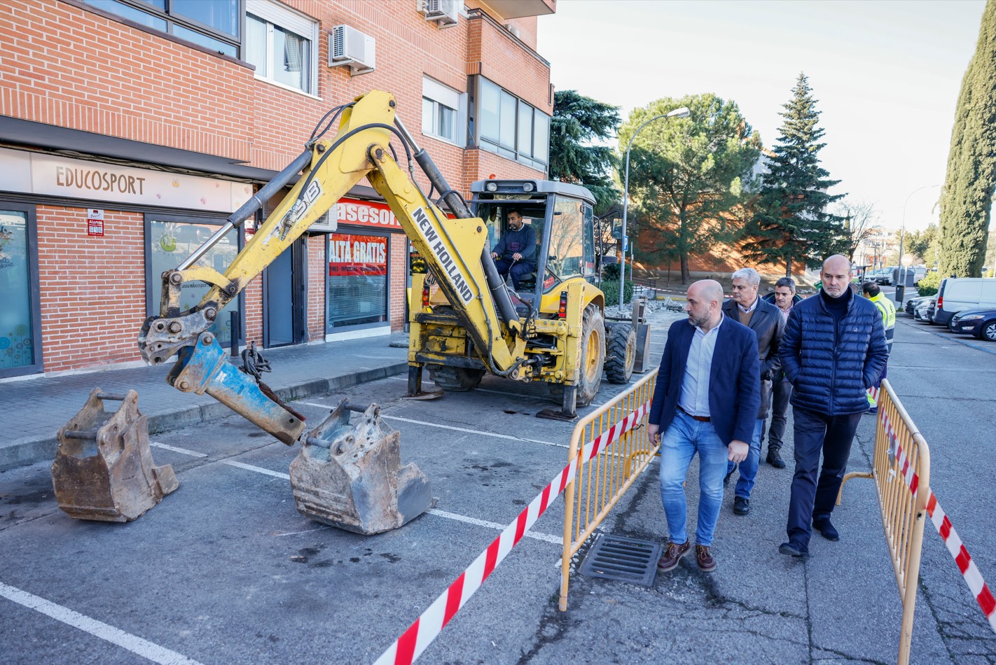 06-Febrero-2023.- El alcalde de Colmenar Viejo, Jorge García Díaz, y el segundo teniente de alcalde y concejal de Obras, Carlos Velasco Aceitero, han visitado el comienzo de las obras de reforma integral de las calles del barrio de Prado Tito - El Olivar con un presupuesto que 978.939,88 euros, tras ajustarse al contexto de precios actuales, en el que se incluye la renovación y nuevo trazado de aceras, pavimentación de las calles, nueva red de alumbrado, dotación de mobiliario urbano y señalización en las calles Camilo José Cela, Antonio Machado, Federico García Lorca, Luis Bollaín, Adolfo Bollaín, Luis Vicente Fernández Salcedo, Prado Tito y un tramo de Doctor de la Morena.
