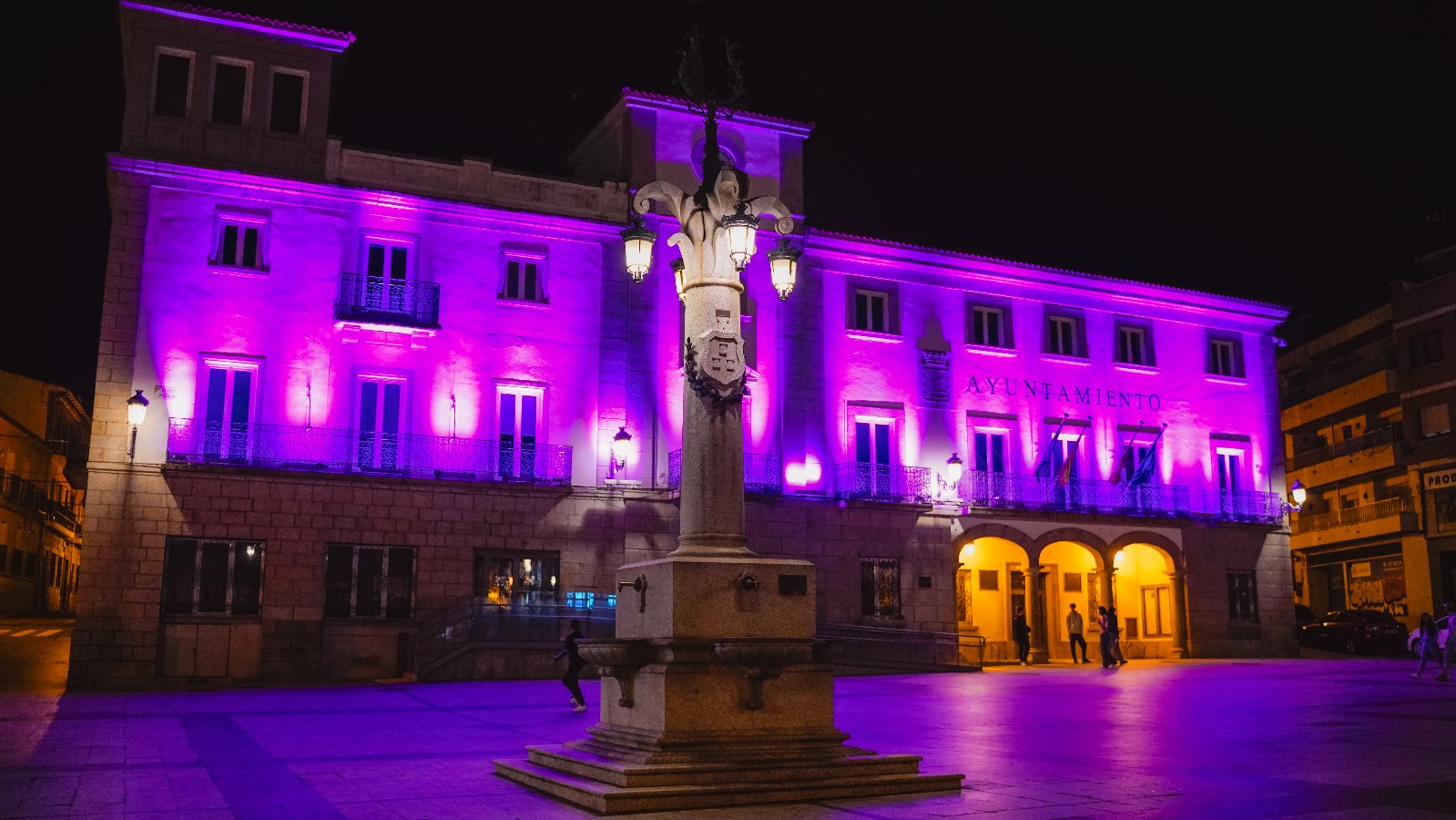 Durante todo el fin de semana, la fachada del Ayuntamiento estará iluminada de morado como muestra de apoyo a todas las mujeres y para visibilizar la lucha por la igualdad.