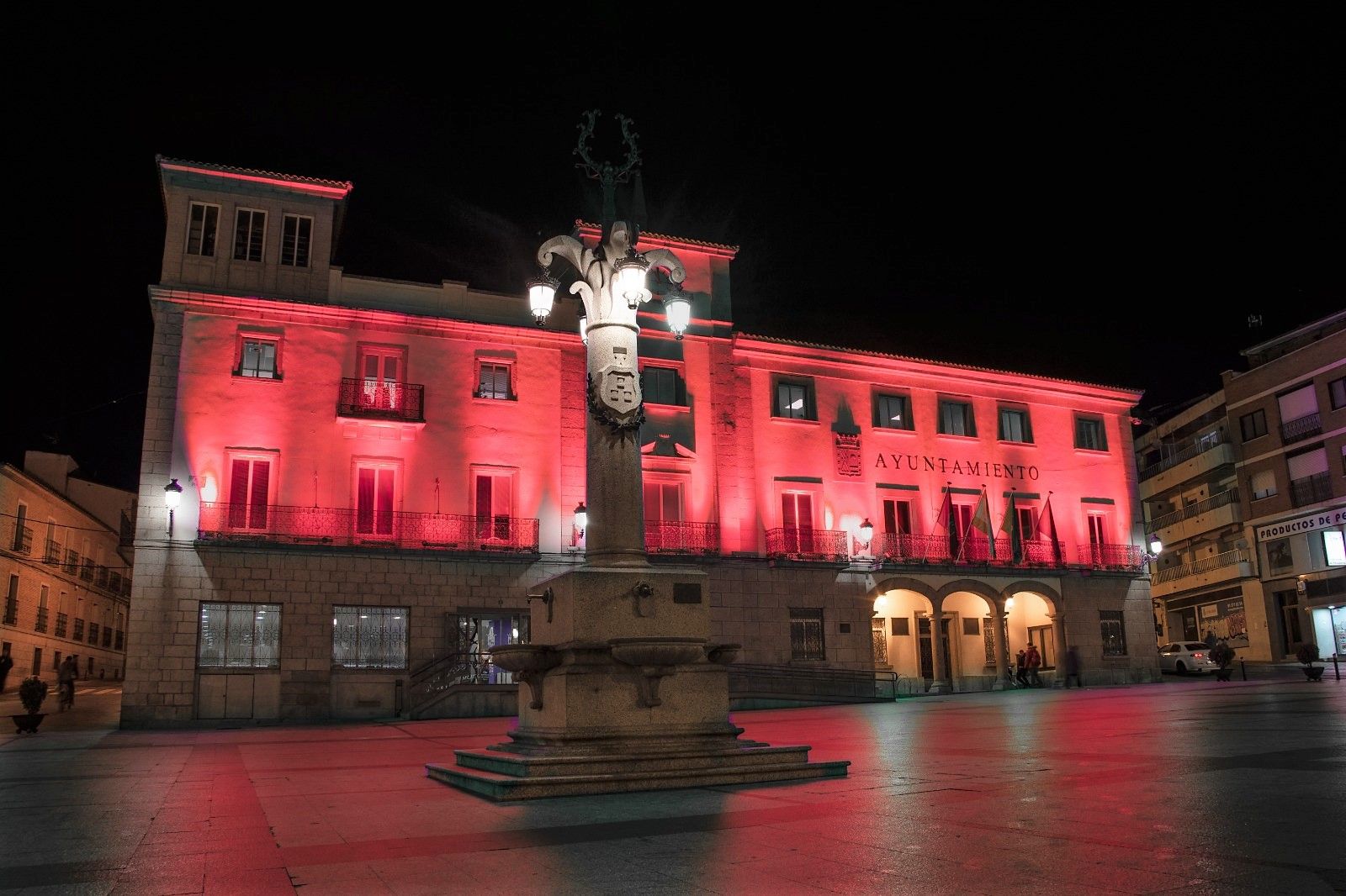 La fachada del Ayuntamiento se ilumina de rojo por el Día Mundial del Donante de Sangre