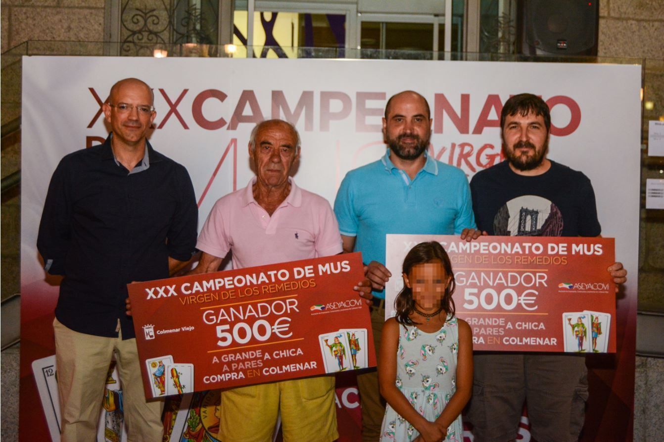La alianza entre el Campeonato de Mus, las Concejalías de Economía y Deportes del Ayuntamiento de Colmenar Viejo y la Asociación de Empresarios y Comerciantes ASEYACOVI ha permitido que los premiados, en vez de recibir como premio un objeto determinado, cuenten con un cheque que pueden emplear libremente en los 41 establecimientos inscritos en la promoción ‘A grande, a chica y a pares... Compra en Colmenar’, fomentando el comercio local.