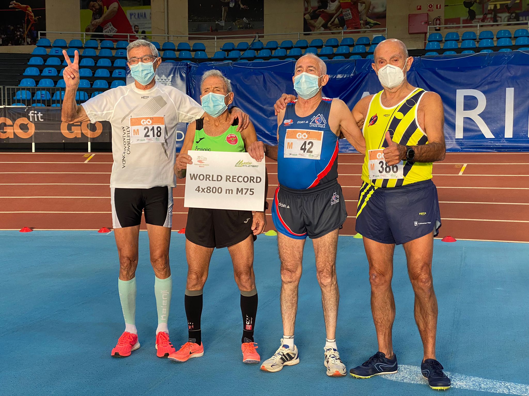 Juan Colmenarejo, vecino de Colmenar Viejo e integrante del relevo 4x800 metros para mayores de 75 años, ha conseguido el récord del mundo en pista cubierta en el Trofeo Ecocesta Máster, celebrado el pasado 6 de noviembre en las instalaciones del Centro Deportivo Municipal Gallur.