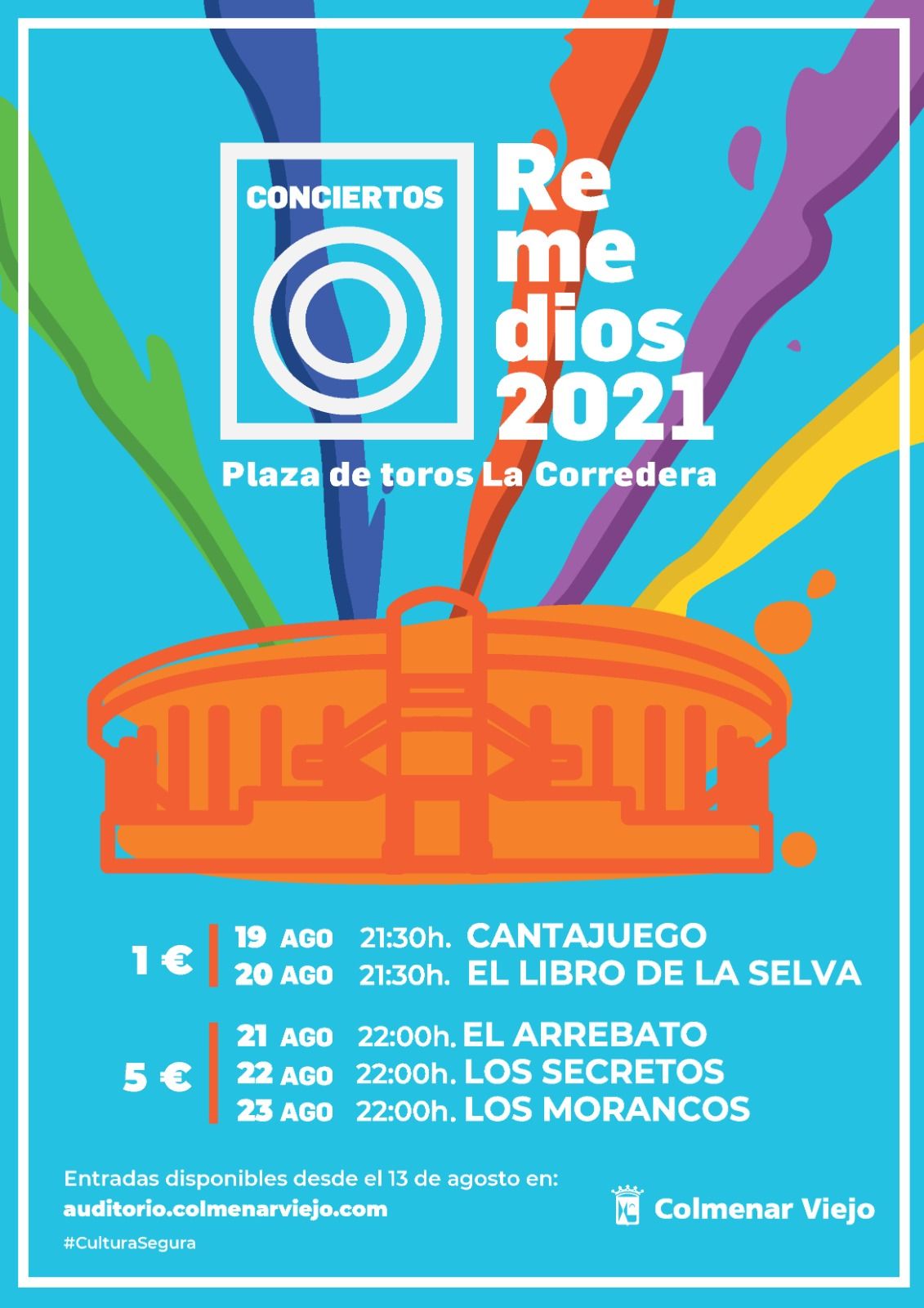 “Solo quedan unas horas para el arranque de esta programación cultural que tiene como escenario la Plaza de toros, un recinto al aire libre que permite la celebración de los espectáculos de forma segura, en un espacio acotado y con aforo limitado. Recordamos la importancia de cumplir con la normativa sanitaria en todo momento, así como evitar aglomeraciones acudiendo con suficiente antelación, respetar el orden de salida al finalizar el evento u ocupar únicamente localidad seleccionada en el momento de compra. Los tickets están a la venta hasta el comienzo de cada espectáculo, por lo los vecinos que deseen asistir a cualquiera de las actividades de esta agenda cultural todavía están a tiempo de hacerse con su entrada”, añade la concejal de Festejos, Isabel Álvarez Díaz.