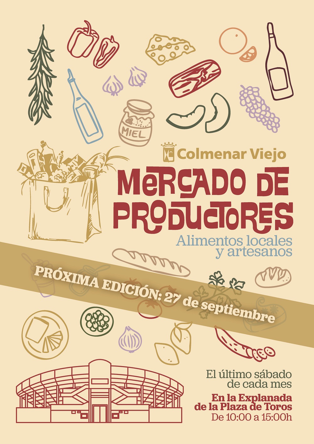 22-septiembre-2025. El sábado 27 de septiembre vuelve el Mercado de Productores de Colmenar Viejo, con una nueva ubicación: la Explanada de la Plaza de Toros, donde agricultores, artesanos y productores nos descubrirán una amplia variedad de alimentos y productos frescos de la zona. Esta cita, que se celebra el último sábado de cada mes, estrena también horario: de 10:00 a 15:00h.
